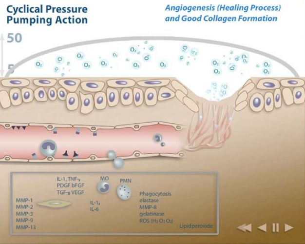 Sistem vsebuje zrakotesno komoro, kontrolno enoto in vlažilno posodico. Nastavi se lahko čas delovanja in ciklično spreminjanje tlaka med 5 mbar in 50 mbar. Komoro je potrebno priključiti na izvor kisika s pretokom vsaj 10 l/min.